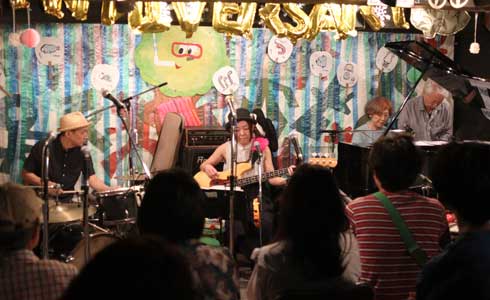 渋谷毅 (p,vo) かわいしのぶ (b,vo) 藤ノ木みか (per,vo) 外山明 (ds,vo)